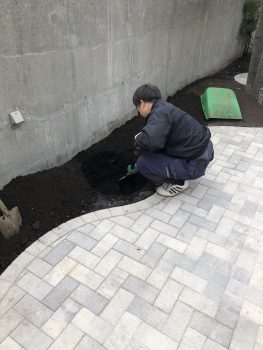 他の作業の間に植木を運ぶ力仕事をしてくれました、尾林工事部長!